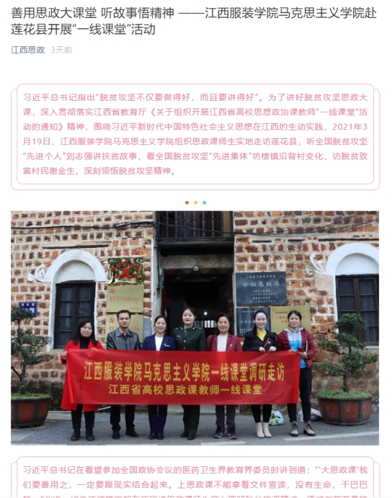 江西思政:善用思政大课堂 听故事悟精神 ——江西服装学院亚洲天堂网站赴莲花县开展“一线课堂”活动