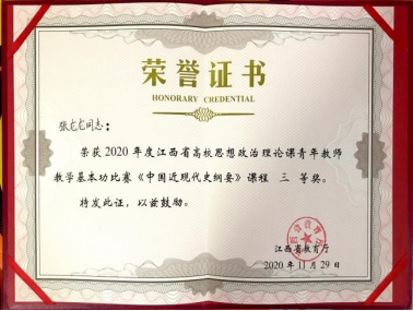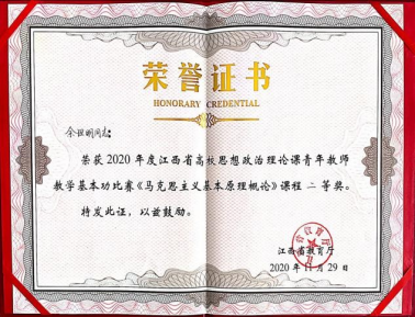 我校亚洲天堂网站教师获2020年度江西省高校思政课青年教师教学基本功比赛二等奖