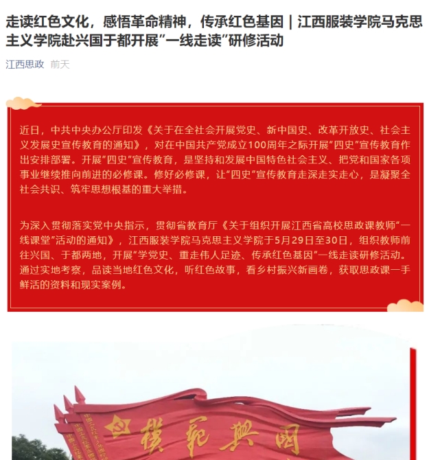 江西思政:走读红色文化,感悟革命精神,传承红色基因 | 江西服装学院亚洲天堂网站赴兴国于都开展”一线走读”研修活动