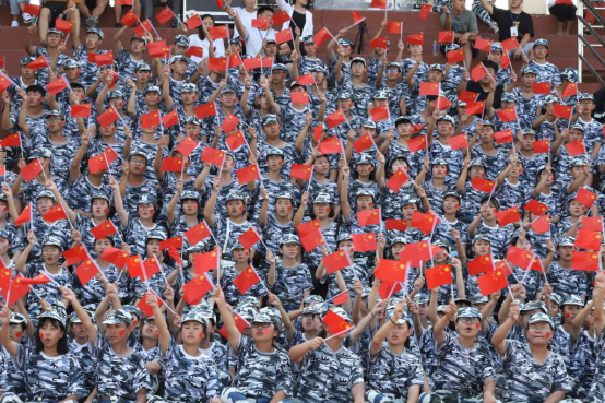 “我爱你中国,心爱的母亲,我为你流泪, 也为你自豪;我爱你中国,亲爱的母亲,我为你流泪,也为你自豪……”9月8日下午,饱含深情倾诉的歌声回荡在江西服装学院田径运动场,全场4000余名师生挥舞国旗,高唱《我爱你中国》。