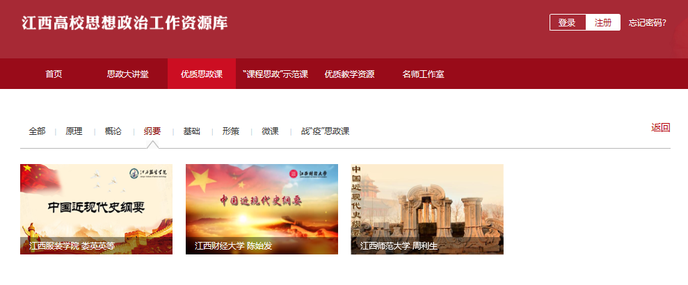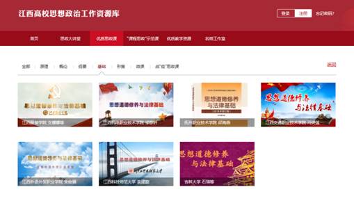 近日,我院建设的网络在线课程《思想道德修养与法律基础》(简称:基础课)、《中国近现代史纲要》(简称:纲要课)作为“优质思政课”入选江西高校思想政治工作资源库,供各高校师生学习使用。