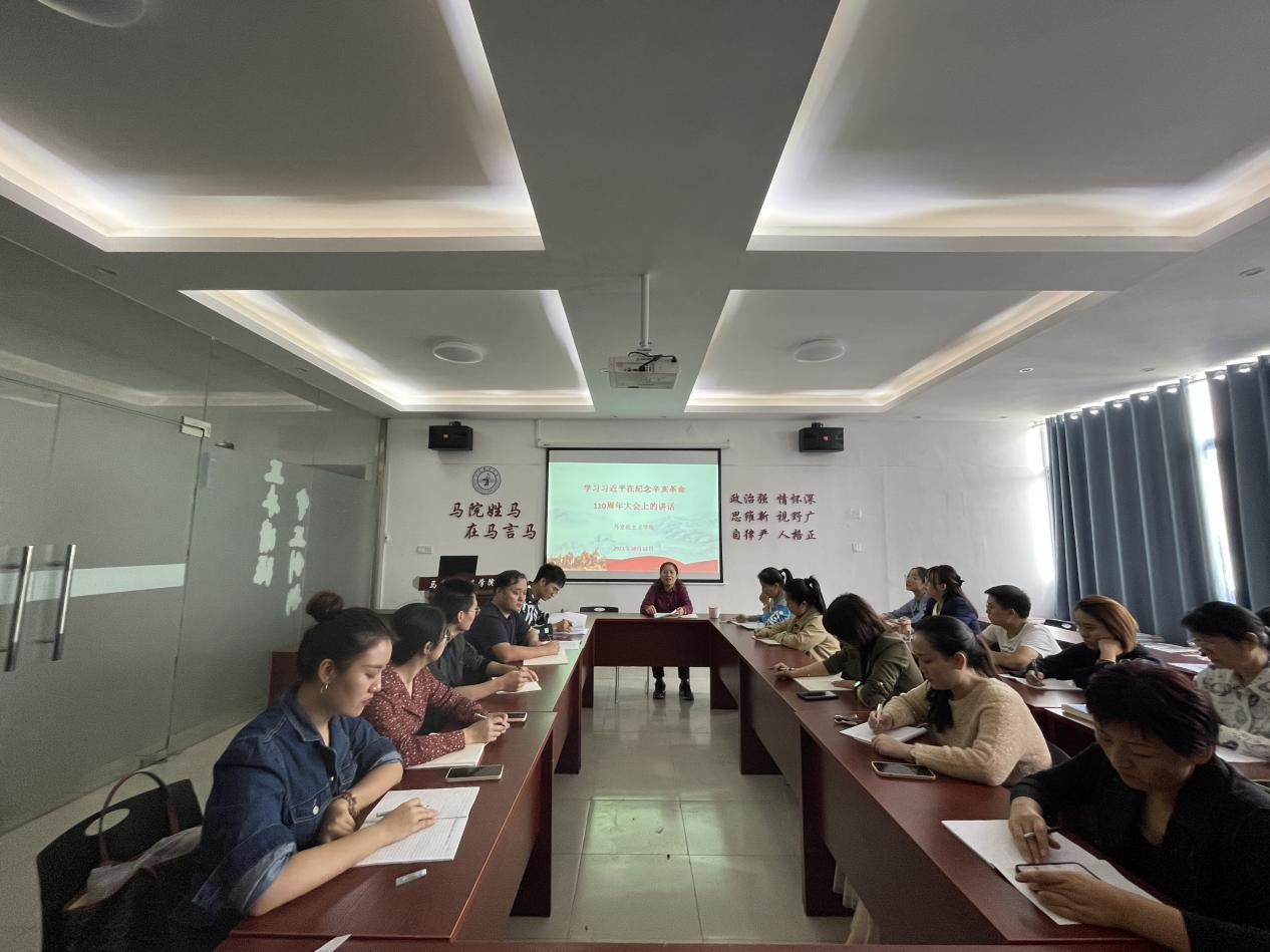【亚洲天堂网站 张馨文撰稿】2021年10月9日上午,纪念辛亥革命110周年大会在人民大会堂隆重举行,习近平总书记出席大会并发表重要讲话。我院组织全院教师收看大会直播,聆听习近平总书记重要讲话,重温辛亥革命推动思想解放与社会变革的峥嵘岁月,领悟辛亥革命伟大意义。10月12日下午,我院在马克思学院会议室再次组织全院教师认真学习习总书记在纪念辛亥革命110周年大会上重要讲话,会议由周丽琴院长主持。