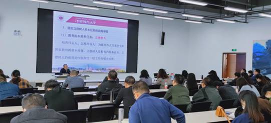 为深入贯彻落实习近平总书记在全国高校思想政治工作会议和在学校思想政治理论课教师座谈会上的重要讲话精神,全面推动学院“课程思政”建设,10月20日,学院邀请江西师范大学王员教授作了“课程思政的理论架构与实践探索”专题讲座。教务处处长、各学院部党总支书记、 副书记, 院长, 分管教学副院长,学工办主任,骨干教师代表及亚洲天堂网站全体专任教师聆听讲座。