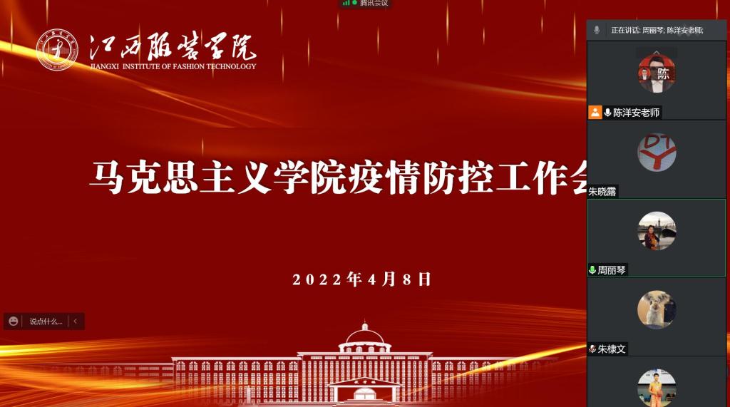 2022年4月8日中午,亚洲天堂网站通过线上腾讯会议召开4月份疫情防控工作会议。会议由学院院长周丽琴主持,学院党政领导班子成员、学院全体教师参加会议。