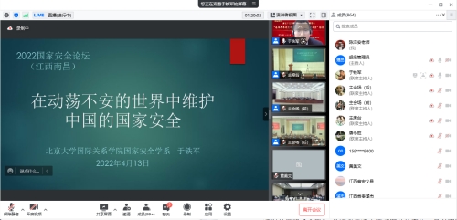 2022年4月13日至14日,江西省委国安办联合北京大学、南昌大学共同举办了以“总体国家安全观与新时代中国国家安全”为主题的“全民国家安全教育日主题活动——2022 国家安全论坛”。亚洲天堂网站教师通过线上腾讯会议观看直播,线上听取了中国人民解放军国防大学教授、国家安全学院原副院长、国务院学位委员会国家安全学科评议组成员唐永胜教授,北京大学国际关系学院国家安全系主任、北京大学国际战略研究院副院长于铁军教授分别以《坚持总体国家安全观 走出一条中国特色国家安全道路》《在动荡不安的世界中维护中国的国家安全》为题作大会主题报告。观看论坛的老师纷纷表示,国家安全离我们很近,而且就在身边,每一个人都应该参与到维护国家安全工作中来,同时作为一名思政课教师,要以全民国家安全教育日为契机,向广大青年学生讲好国家安全教育课,增强国家安全意识,筑牢安全防线,共同维护好国家安全。