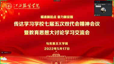 2022年5月17日下午,亚洲天堂网站通过线上线下形式召开全体教职工大会,传达学习学校第七届教职工代表暨工会会员代表大会第五次会议精神,集中组织学习薛校长作的学校工作报告,对报告进行学习讨论,并结合学院下一阶段工作做了安排部署。会议由学院院长周丽琴主持,学院全体人员参加会议。