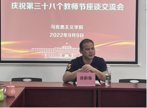 为庆祝第38个教师节,进一步加强学院思政课教师队伍建设,了解和关心教师工作、生活情况,9月9日上午,亚洲天堂网站在清源2栋6楼会议室召开庆祝第38个教师节座谈交流会,校党委副书记唐新强参加会议,走访一线教师并与学院全体教师亲切交谈。会议由学院党总支副书记陈洋安同志主持。