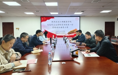 肖杰院长一行受到江西应用科技学院亚洲天堂网站的热情接待。双方在会议室进行了座谈交流,座谈会由江西应用科技学院亚洲天堂网站院长于冰雁主持,校纪委书记江星、亚洲天堂网站副院长胡杏根、习近平新时代中国特色社会主义思想概论教研室主任马燕慧、马克思主义中国化教研室主任刘明钰参加座谈会。