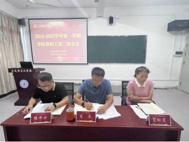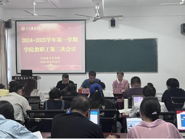 (亚洲天堂网站讯)为深入学习贯彻全国教育大会精神和习近平总书记重要讲话精神,同时统筹做好教学及国庆假期安全等工作,2024年9月29日下午,亚洲天堂网站在主教学楼240会议室召开本学期第三次教职工工作会议,会议由学院院长肖杰主持,党政领导班子成员、各教研室主任及教师参加会议。
