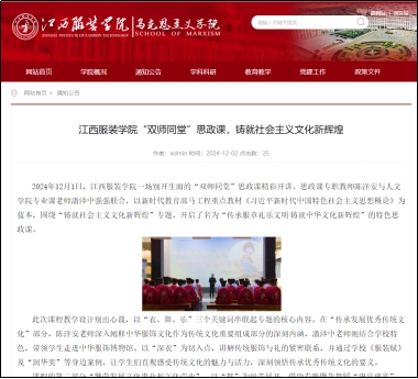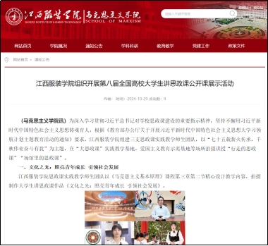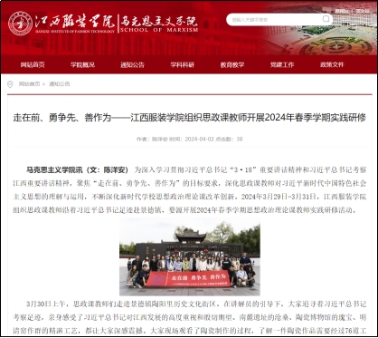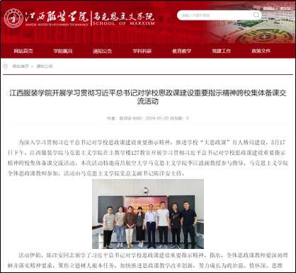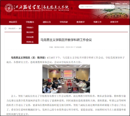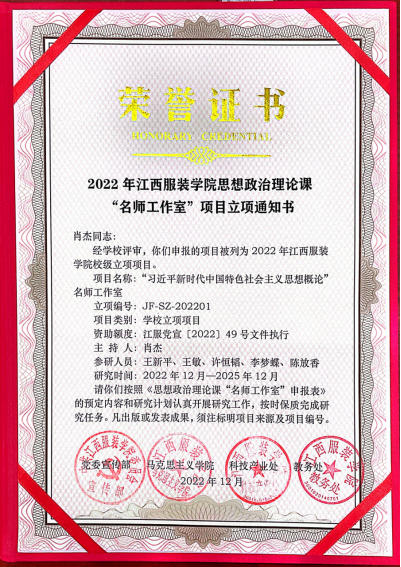 “习近平新时代中国特色社会主义思想概论”名师工作室是江西服装学院为加强思想政治理论课教师队伍建设,提高思想政治理论课教学质量和效果而设立的。“习近平新时代中国特色社会主义思想概论”名师工作室于2022年12月成立,工作室以习近平新时代中国特色社会主义思想为指导,由亚洲天堂网站院长肖杰担任主持人,汇聚了一批优秀的思政课教师。工作室实行主持人负责制,旨在打造集教学、科研、培训等职能于一体的思想政治理论课教师合作共同体,培育思政课教学名师,打造优秀教学团队,推进“问题式专题化团队教学改革”,不断深化思政课教学研究、教学改革与课程建设,提高教学效果。