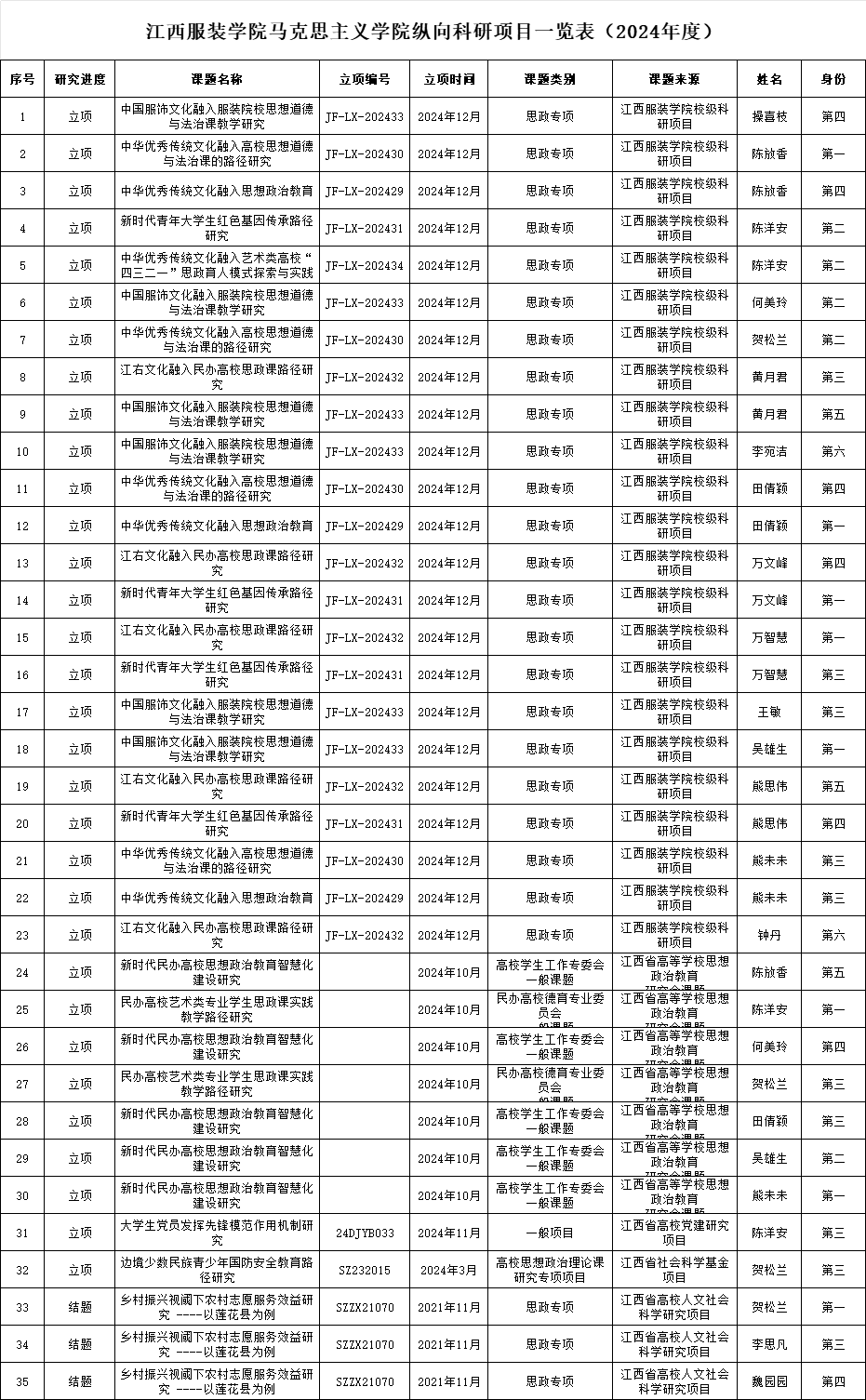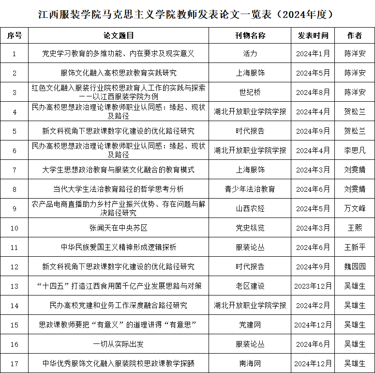 江西服装学院亚洲天堂网站2024年度科研成果汇总表