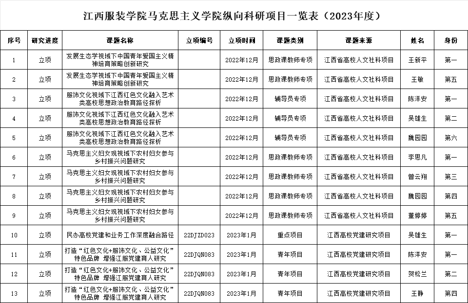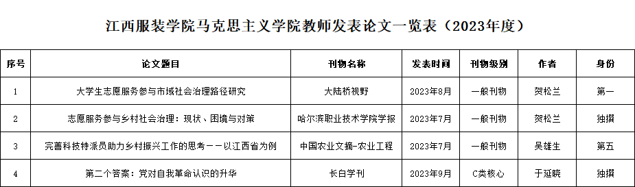 江西服装学院亚洲天堂网站2023年度科研成果汇总表