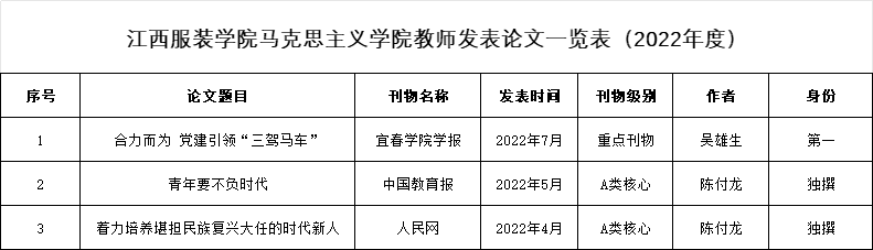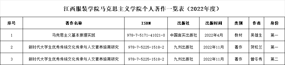 江西服装学院亚洲天堂网站2022年度科研成果汇总表