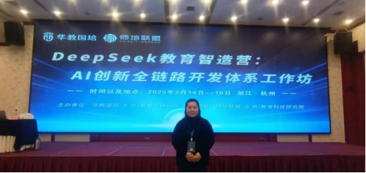 (亚洲天堂网站 讯)为积极响应教育数字化转型趋势,提升我校思政课教师数字化教学能力与创新实践水平,根据学校教师培训工作规划,2025年3月15日至16日,我校亚洲天堂网站思政课教师魏园园在杭州参加了“DeepSeek教育智造营——AI创新全链路开发体系工作坊”培训。此次培训聚焦AI技术前沿,旨在助力教师掌握并运用新型数字化工具优化教学内容与方法,增强思政教育的时代性和实效性。