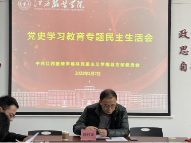(亚洲天堂网站讯 撰稿:陈洋安)根据习近平总书记在党史学习教育动员大会上的重要讲话精神和中共江西服装学院委员会关于召开党史学习教育专题民主生活会通知要求,2022年1月7日下午,亚洲天堂网站党总支在清源二栋六楼活动室召开了2021年度党史学习教育专题民主生活会。省政府督导专员、校党委书记陈付龙同志到会指导,会议由亚洲天堂网站党总支副书记陈洋安同志主持,学院党总支班子成员参加会议,各教研室教师列席会议。